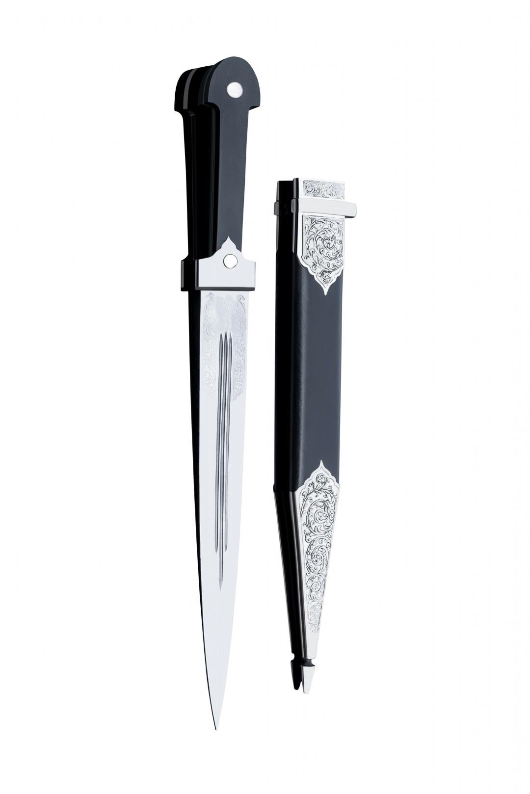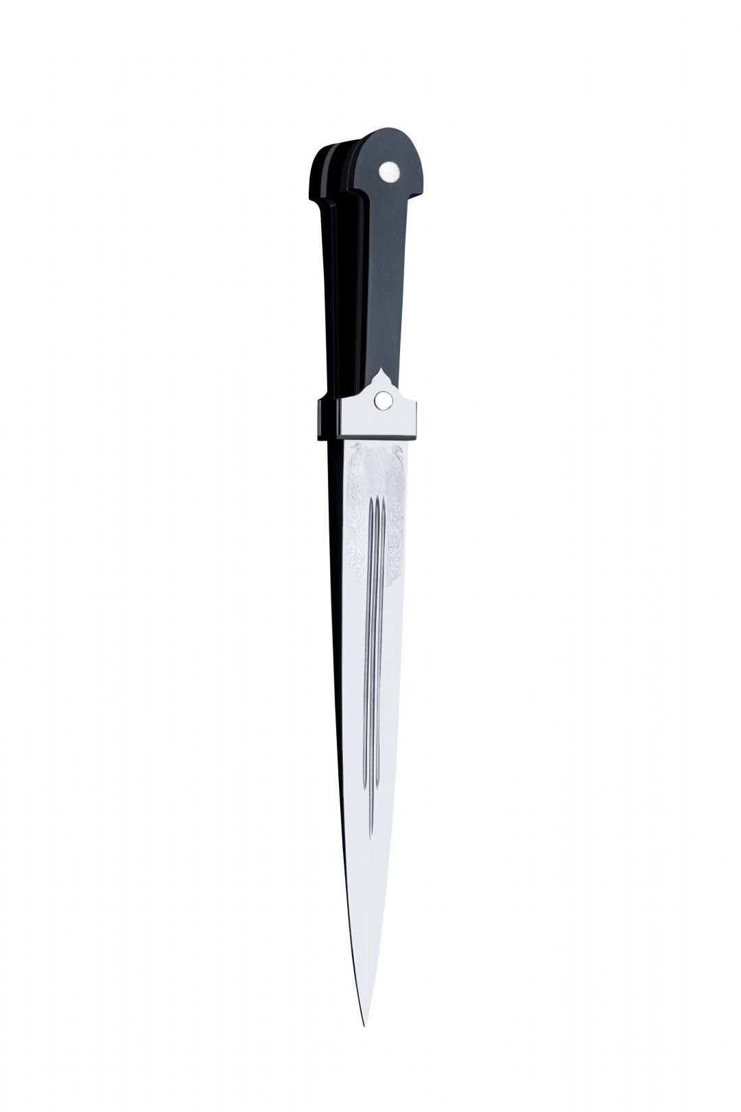 Традиционный представитель кавказского оружия — это кинжал с резьбой образца 1904 года. Он обладает обоюдоострым прямым клинком, который выполнен из высокопрочной стали. Хвостовик — цельнокованый. Клинок оснащен тремя узкими долами и дополнен узором. Его твердость постепенно увеличивается по направлению к боевому концу.