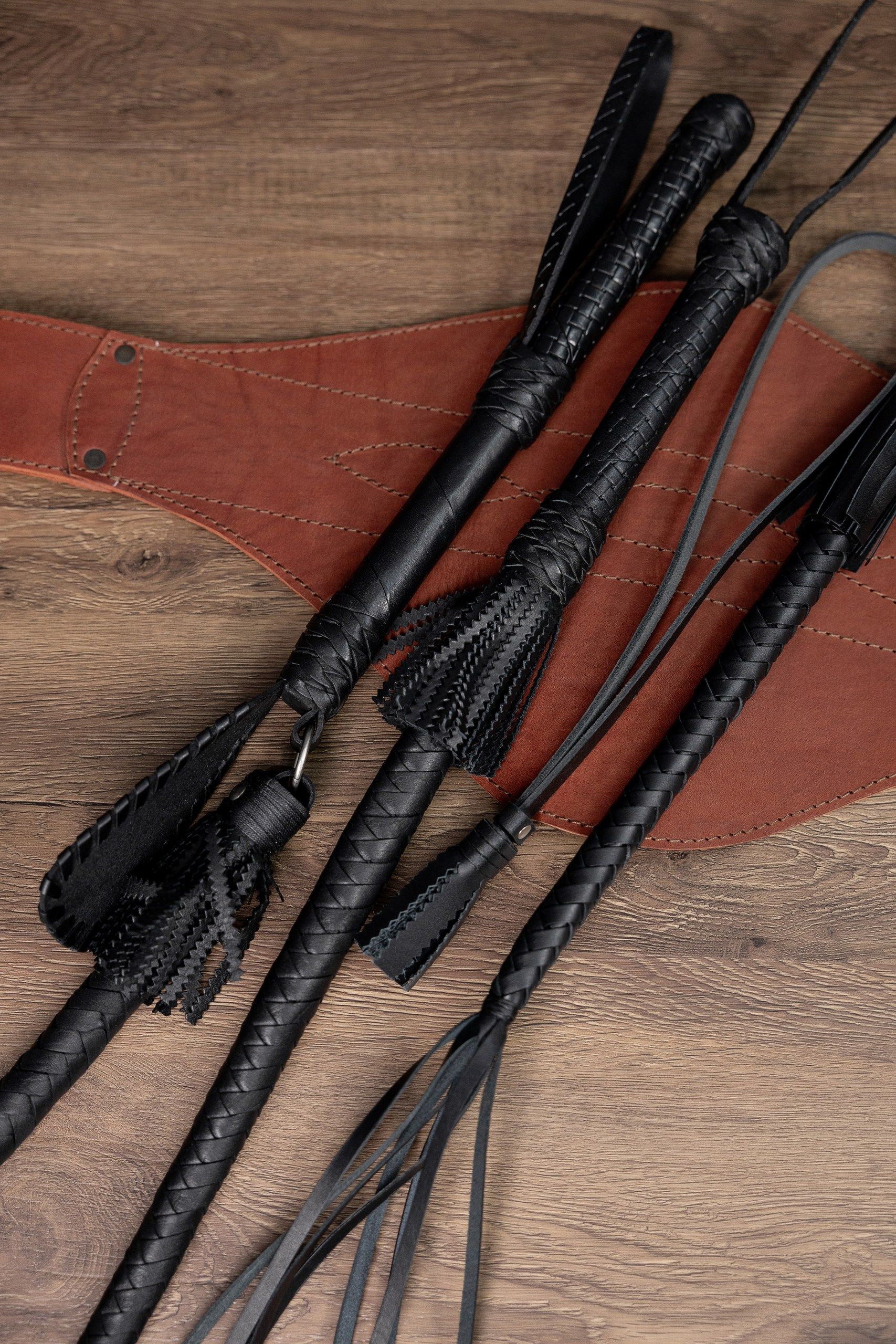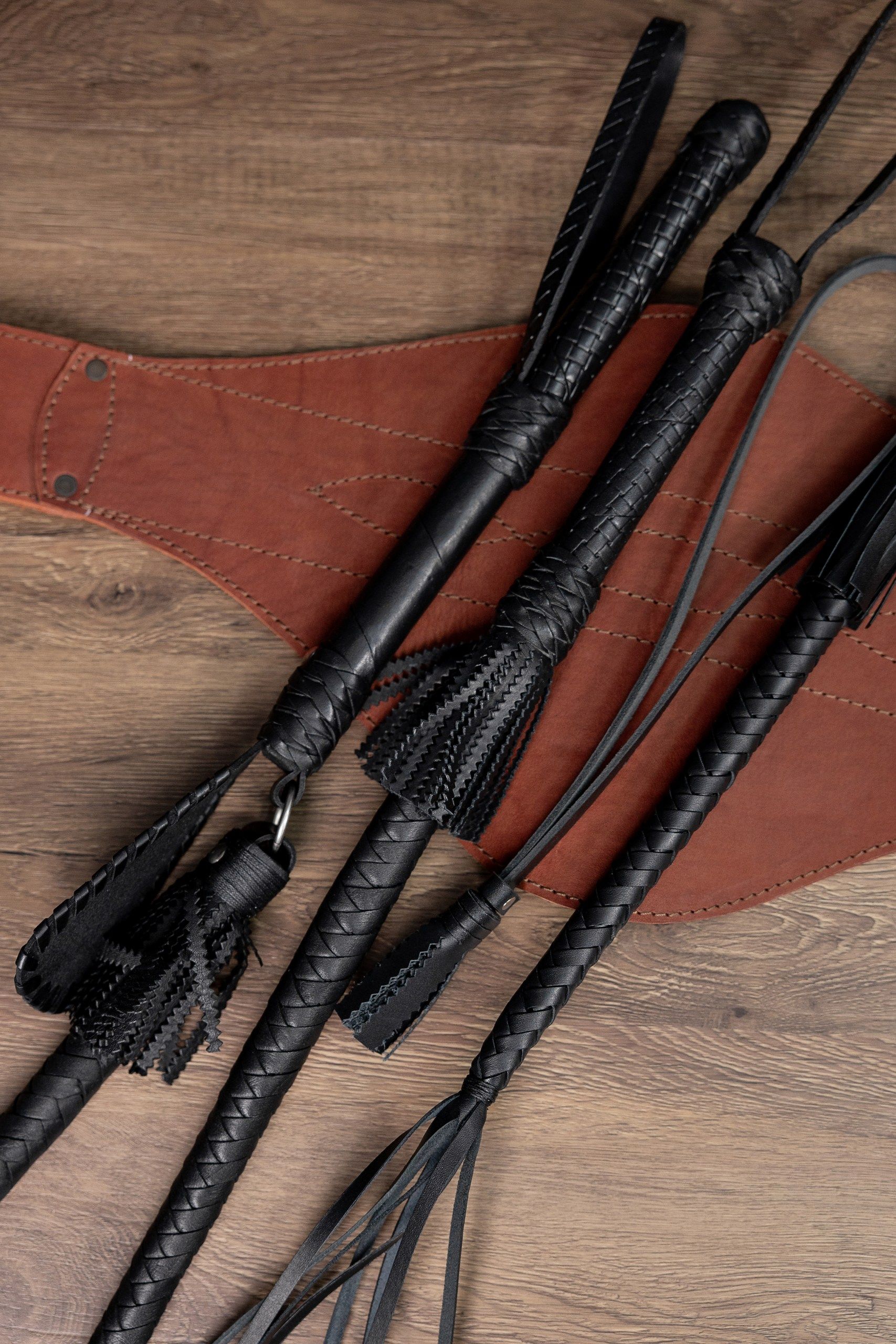 Нагайка ручного плетения. Длина рукояти 15-20 см. Общая длина 70-80 см. Толщина рукояти - 2 см. Материал изготовления: кожа сыромятая, шорно-седельная. Рукоять-натуральное дерево. Согласно классификации холодного оружия, нагайка, не снаряженная дополнительным металлическим грузом, не относится к ударно-раздробляющему оружию и владение им уголовно наказуемым преступление не является.