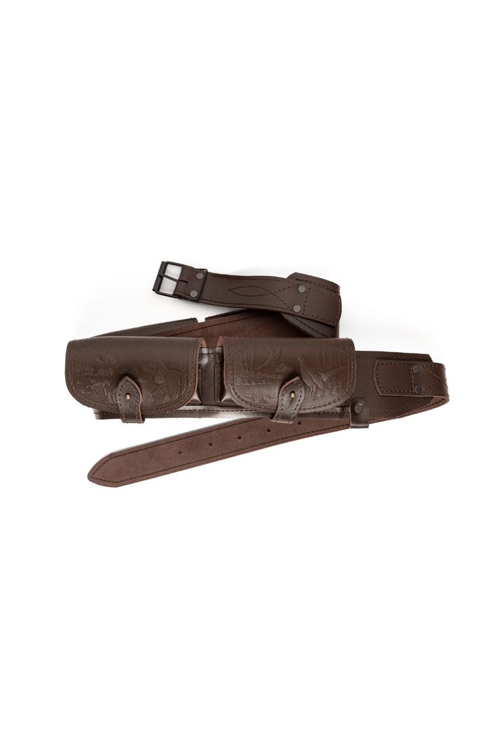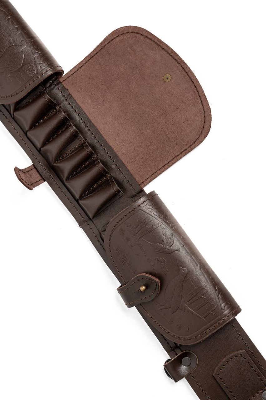 Охотничий патронташ из натуральной кожи с рисунком дичи.