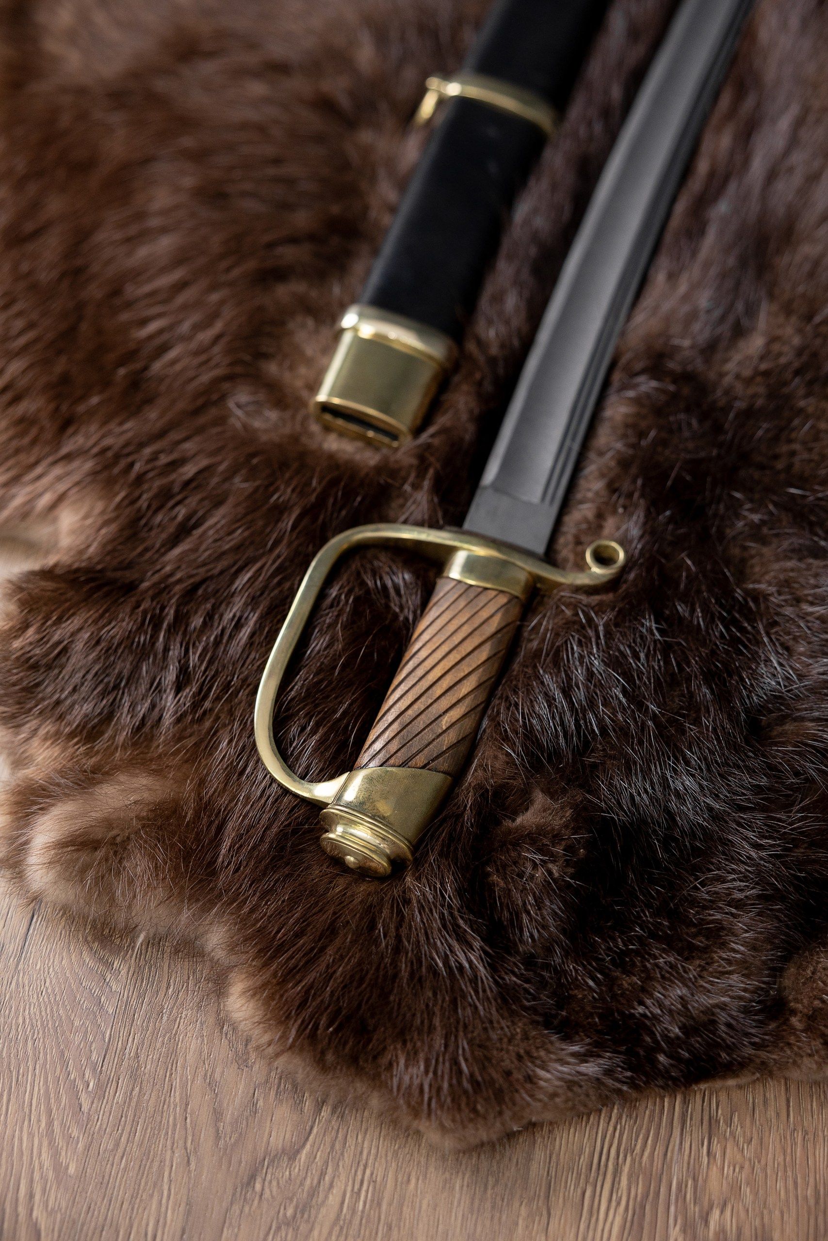 Клинок шашки выполнен из углеродистой стали 65г повышенной прочности. Хвостовик — цельнокованый, проходящий сквозь всю рукоять. Снаружи он стягивается гайкой. Твердость клинка повышается по направлению от рукояти к боевому концу. Кромка его выведена под заточку. Обтянутые натуральной кожей ножны выполнены из дерева. Дополнительные элементы — из латуни. Узор на них отсутствует. Защищает шашку специальный кожаный чехол, входящий в комплектацию оружия. Также в комплект входит сертификат соответствия.