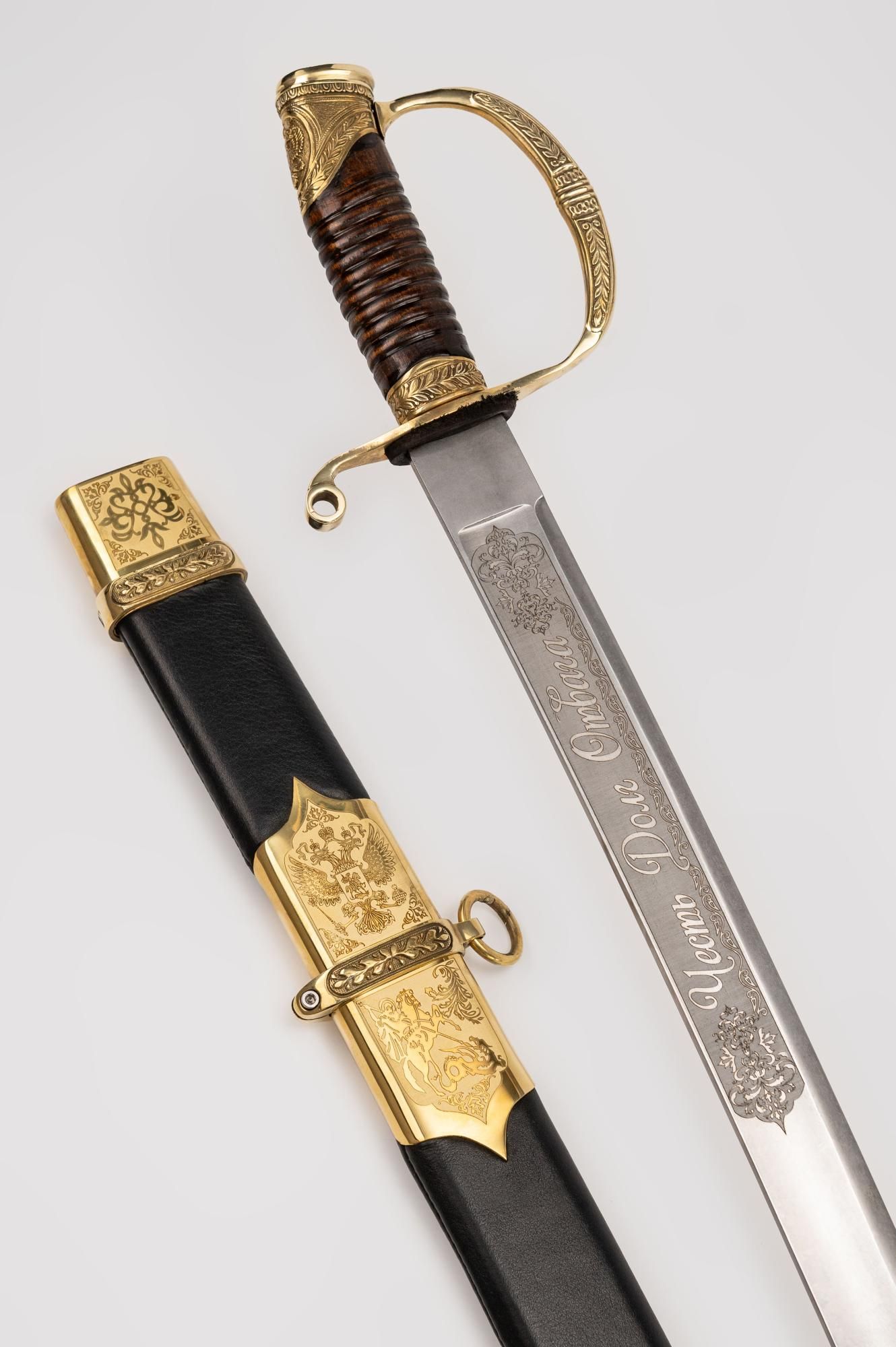 Клинок Драгунской шашки выполнен из рессорной высокоуглеродистой стали. Он имеет один широкий дол и кромку, подведенную под заточку. На его поверхности выгравированы две надписи: «За Веру и Отечество» и «Честь, Долг, Отвага» (с противоположных сторон. Хвостовик клинка является цельнокованым. Проходит он через всю рукоять, а снаружи — стягивается гайкой. Рукоять оснащена латунной гардой. Черен произведен из массива березы, а ножны — из массива хвойных пород (дополнительно они обтянуты кожей). Дополнительные элементы ножен выполнены из латуни. Поставляется шашка в полной комплектации: чехол из натуральной кожи, сертификат.