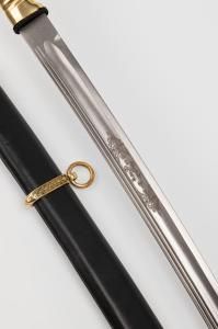 Шашка Казачья Георгиевская образца 1881 года. Особая модель наградного оружия царской армии. Шашка изготавливалась на основе образца драгунской шашки офицерского состава 1881 года. Награждение Георгиевским оружием, или как его еще называли «Золотым оружием», производилось только при особых случаях: проявлению отваги, самоотверженности или храбрости. Такое награждение причислялось к ордену Святого Георгия. Клинок кованый, прямой, изготовлен из высокопрочной стали 65г, содержит один широкий и два узких дола. Кромка клинка подведена под заточку. Закалка клинка зонная, уставная, твёрдость меняется от рукояти к концу. Хвостовик клинка цельнокованый, проходит сквозь всю рукоять, снаружи стягивается гайкой, без подпилов. На клинке методом химического травления нанесен узор в виде орнамента. Рукоять полностью латунная. Ножны деревянные, обтянуты натуральной кожей, приборы ножен выполнены из латуни. В комплект входит: защитный чехол из винилискожи и сертификат.