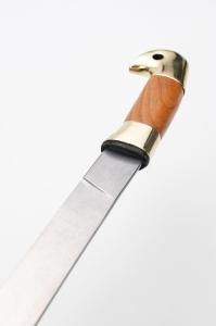 - Рукоять выполнена из дерева и дополнена элементами из латуни.