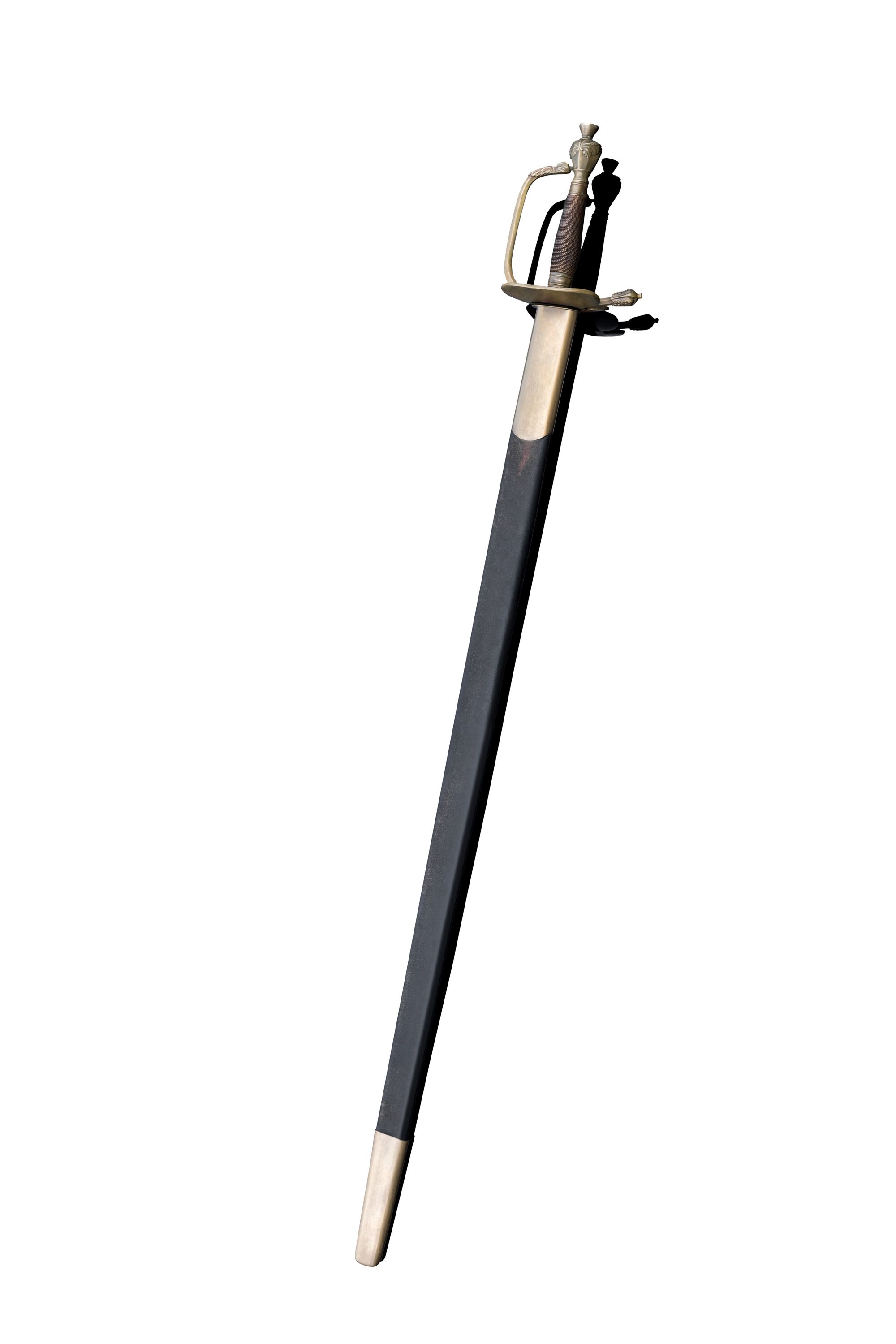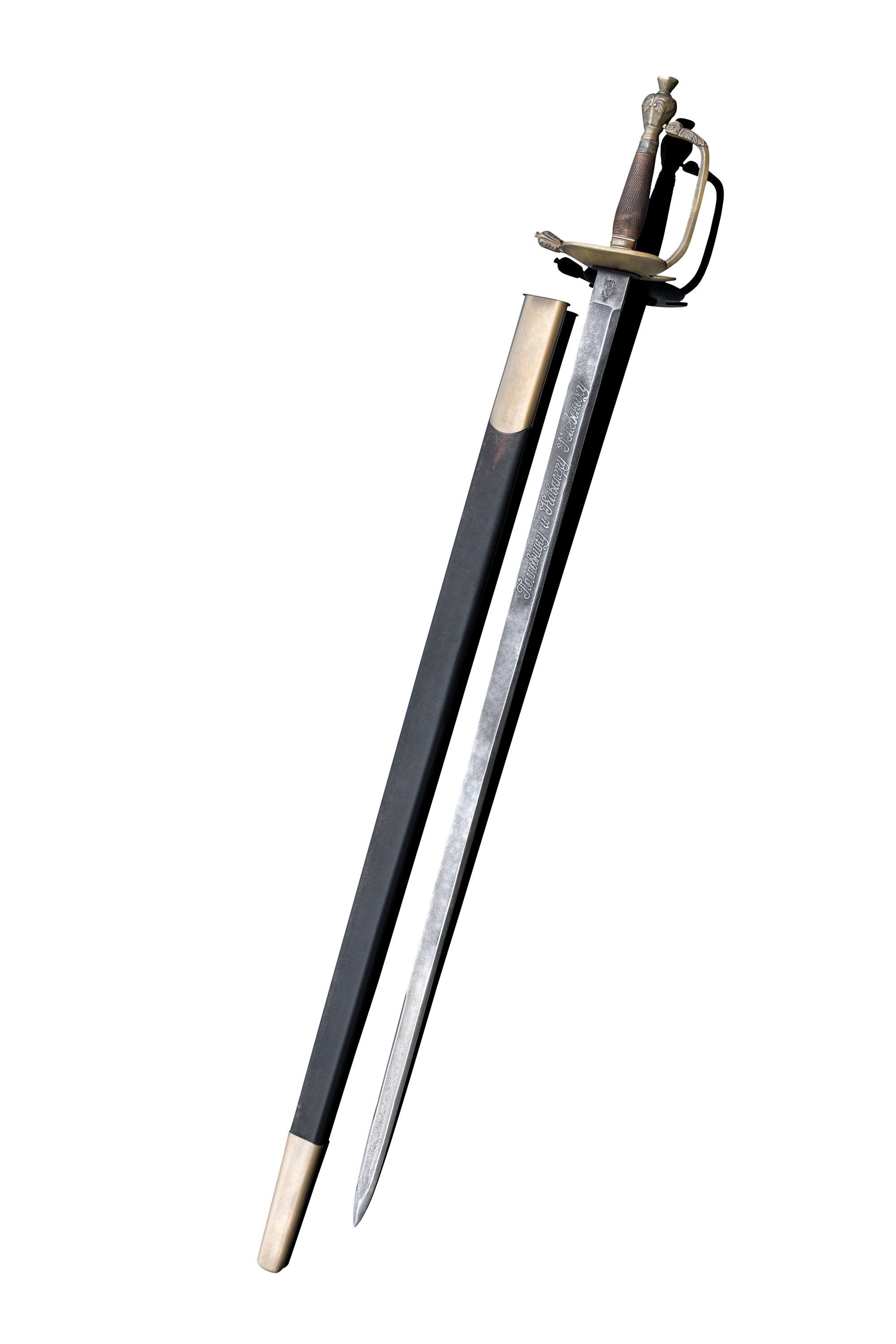 Шпага Пехотная, образца 1798 года. В первой четверти XIXвека эта шпага была строевым оружием офицеров и генералов пехоты. Использовалась также флотскими офицерами. В 1836 году такие шпаги заменили морские сабли у генералов по Морскому ведомству, инженеров и классных чиновников по Морской строительной части. К 1914 году пехотную шпагу носили при обыкновенной и повседневной форме с шароварами: генералы пехоты, артиллерии, инженерных войск, кавалерии, военные врачи, фармацевты, гражданские чиновники военного ведомства. Данный экземпляр является полной копией антикварной пехотной шпаги двойного награждения. Это означает, что её владелец имел награду За Храбрость – Орден Святой Анны и являлся кавалером ордена Святого Георгия. В наше время, оригинальные образцы оружия царской России являются большой редкостью и стоимость настоящего антикварного оружия исчисляется сотнями тысяч рублей.